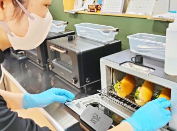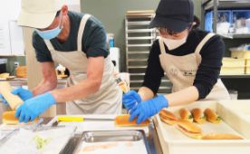 コッペパンサンドの調理補助として、具材の盛り付け作業を中心に行います。パン生地からの製造ではないため、自分のペースで安心して取り組めます。