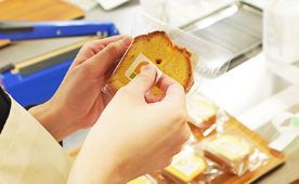 調理されたコッペパンやパウンドケーキの、販売・テイクアウト用の包装作業を行います。丁寧なラッピングを通じて、集中力を養います。