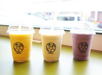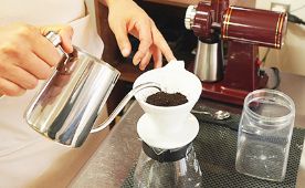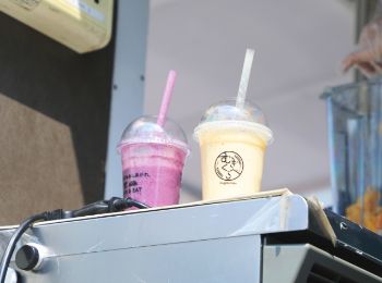 ミキサーに大麦ジュレや具材を入れて作るスムージーや、利用者さんのお声から、ハンドドリップでのコーヒーをメニュー化し、カフェで提供しています。