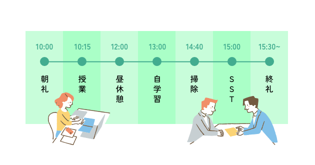 体調管理や生活リズムの整え方、日常生活で必要なマナーや習慣づくりを支援します。
